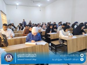 انطلقت في الكلية التقنية الشطرة امتحانات الفصل الأول النهائية لطلبة المرحلة الأولى للعام الدراسي 2025–2026، وللدراستين الصباحية والمسائية، وسط أجواء تنظيمية متميزة واستعدادات إدارية وفنية متكاملة وفّرت البيئة الملائمة لأداء الامتحانات بانسيابية وانتظام.