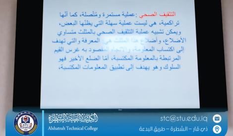 برعاية السيد عميد الكلية التقنية الشطرة (الاستاذ المساعد الدكتور عدنان علوان مكطوف ) اقامت شعبة المتابعة في الكلية بالتعاون مع قيادة شرطة ذي قار ندوة توعوية حول (الحصانة الامنية) حاضر فيها المقدم (عباس حميد جازع ) مدير شعبة السيطرة وتنظيم السلاح في قيادة شرطة ذي قار ،