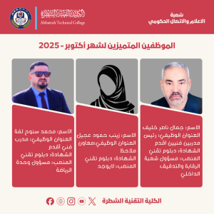 عميد الكلية التقنية الشطرة يكرّم منتسبيها المتميزين لشهر تشرين الأول 2025