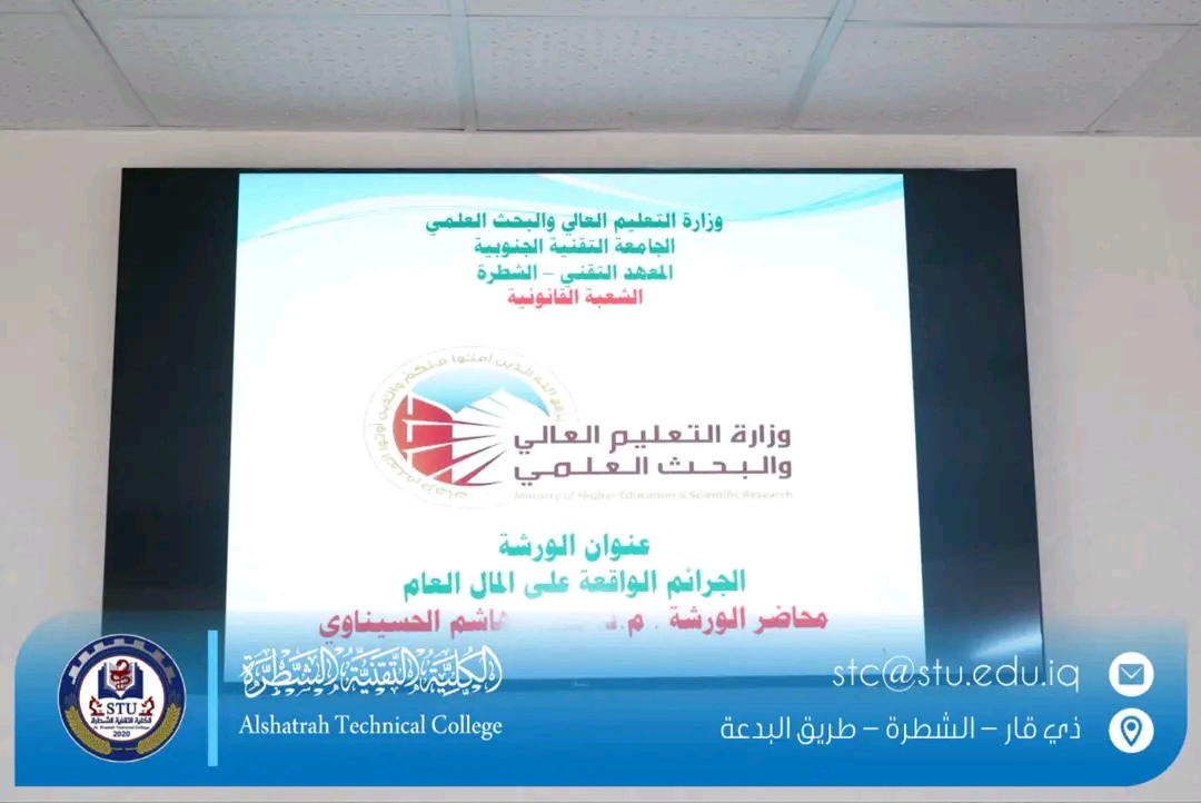 الكلية التقنية الشطرة تنظم ورشة عمل حول الجرائم الواقعة على المال العام نظّمت الكلية التقنية الشطرة، عبر شعبة الشؤون القانونية، ورشة عمل بعنوان (الجرائم الواقعة على المال العام)، قدّمها الدكتور محمد هاشم الحسيناوي، وبحضور السيد عميد الكلية الأستاذ الدكتور محمد سعيد حران المحترم. […]
