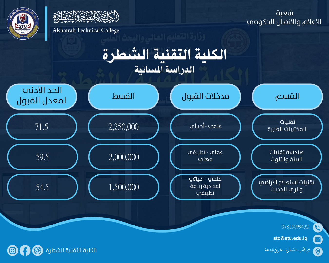 بتوجيه وإشراف مباشر من السيد عميد الكلية التقنية الشطرة الأستاذ الدكتور محمد سعيد حران المحترم، باشرت شعبة الإعمار والمشاريع بإنهاء أعمال إنشاء سلم الطوارئ في الأقسام الداخلية الخاصة بالطالبات، ضمن خطط الكلية لتعزيز متطلبات السلامة والأمن. كما شملت الأعمال إعادة تأهيل وصيانة اللوحة الضوئية […]